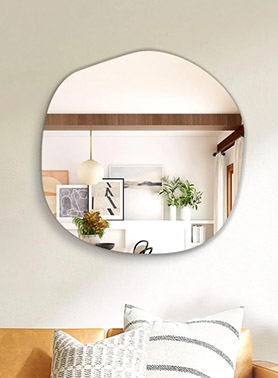 Özel şekilli kesim 4mm flotal bulut ayna. Kenarlar Rodajlı ve Askı aparatı mevcu...